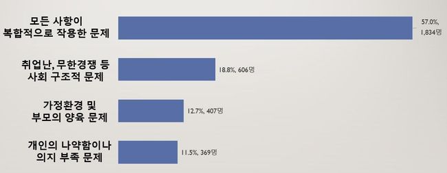 지원 방식에 대한 국민 의견도 선제적 개입 필요성에 무게가 실렸다. 스스로 도움 요청이 어려운 은둔형 외톨이 특성을 고려할 때 정부와 지방정부가 위기 징후를 먼저 파악해 지원해야 한다는 의견이 85.5%였다. 또한 은둔 상태의 개인뿐 아니라 가족을 대상으로 심리상담과 교육 프로그램을 제공해야 한다는 응답도 86.7%에 달했다.
